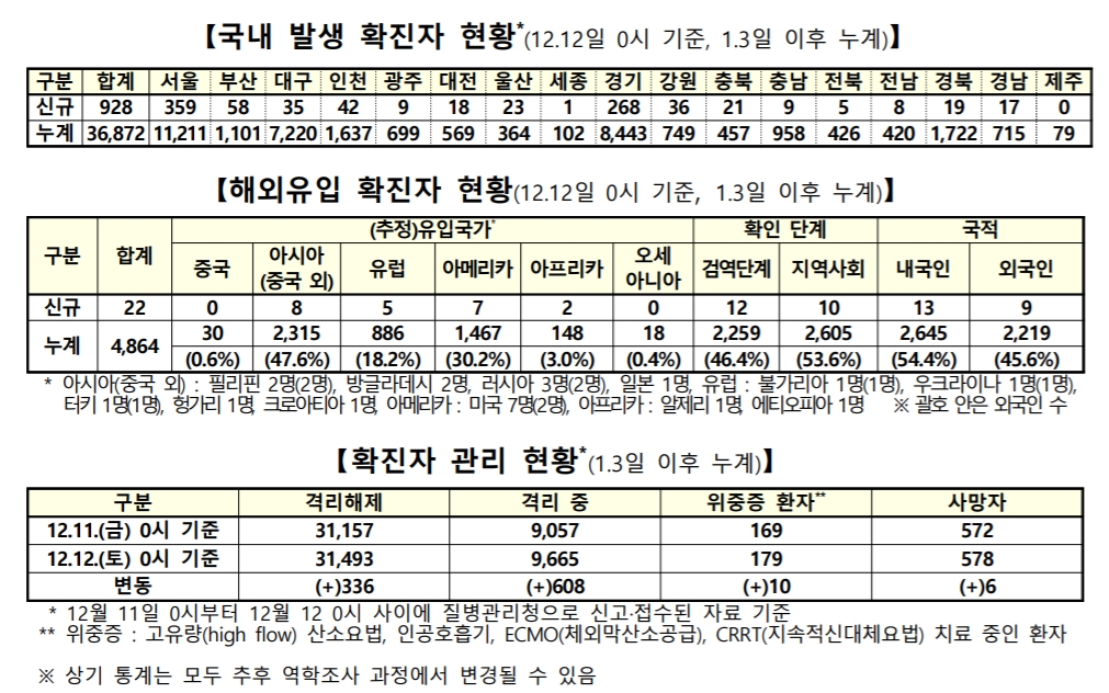 #12월12일 코로나 확진자 950명