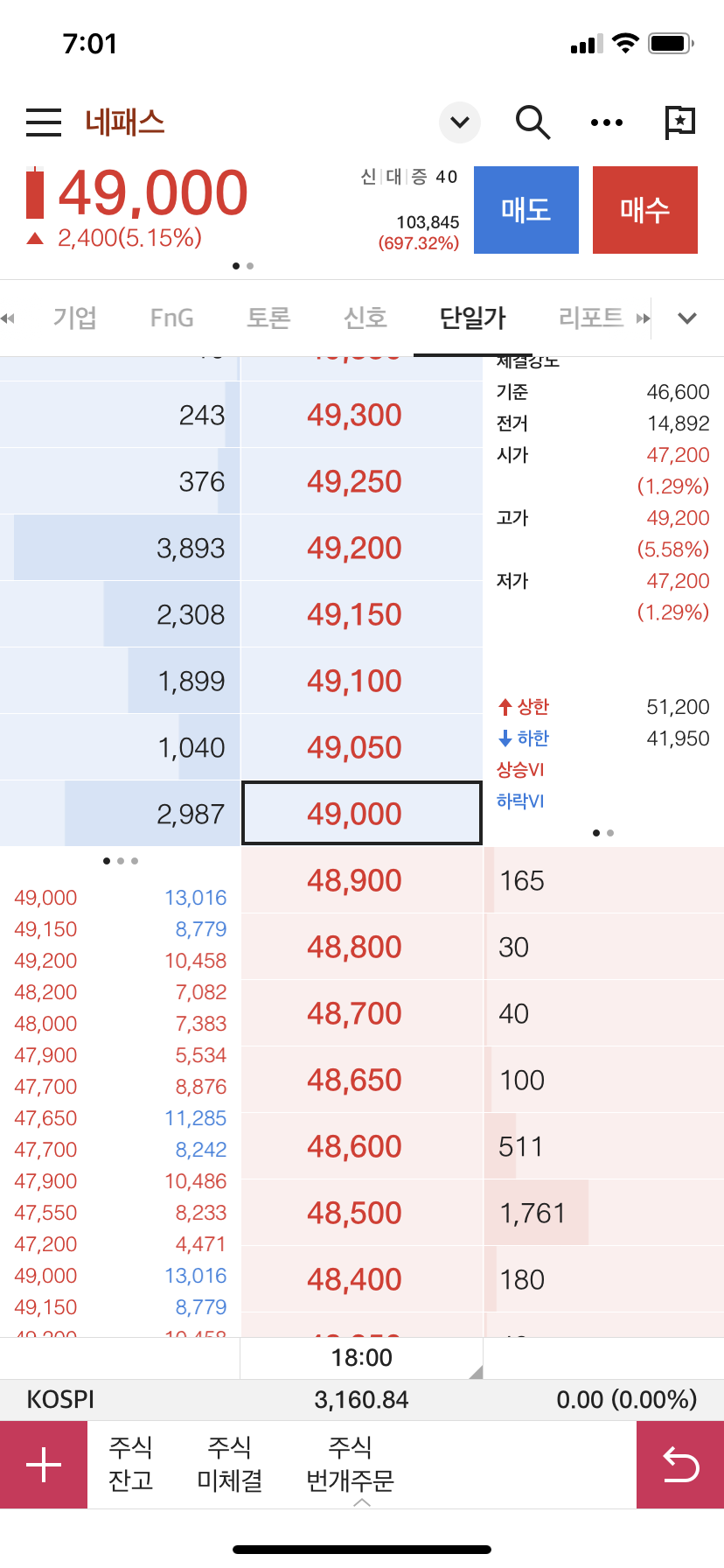 1월 21일 네패스 시외마감 5.15% 상승한 49,000원