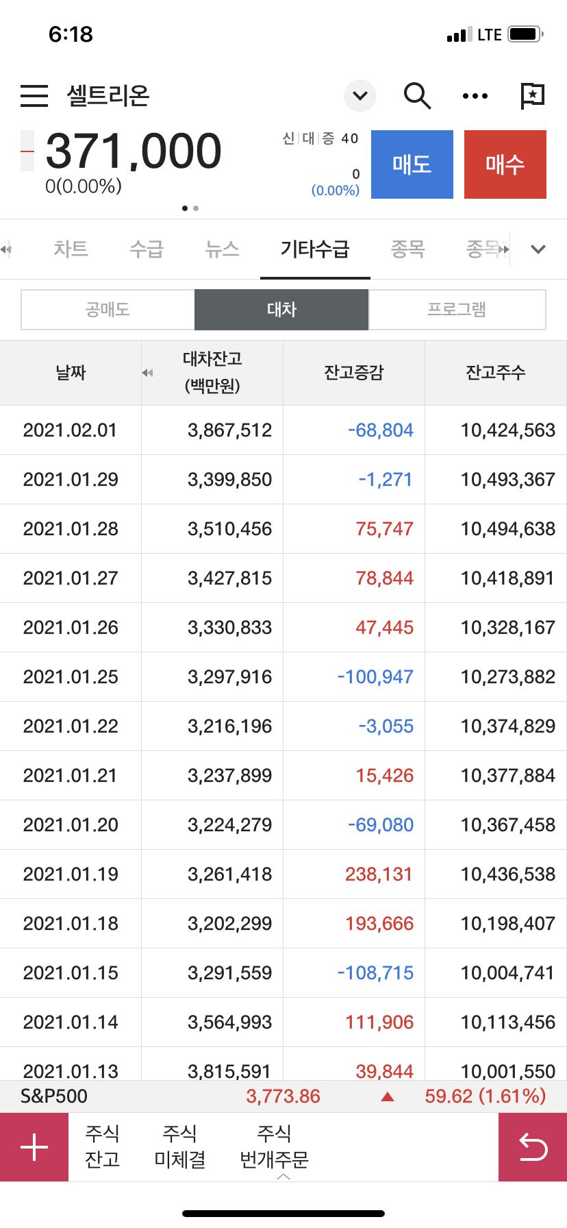 그래도 셀트리온에는 대차잔고가 1,042만 주 대차잔고로는 무려 3.87조이다.