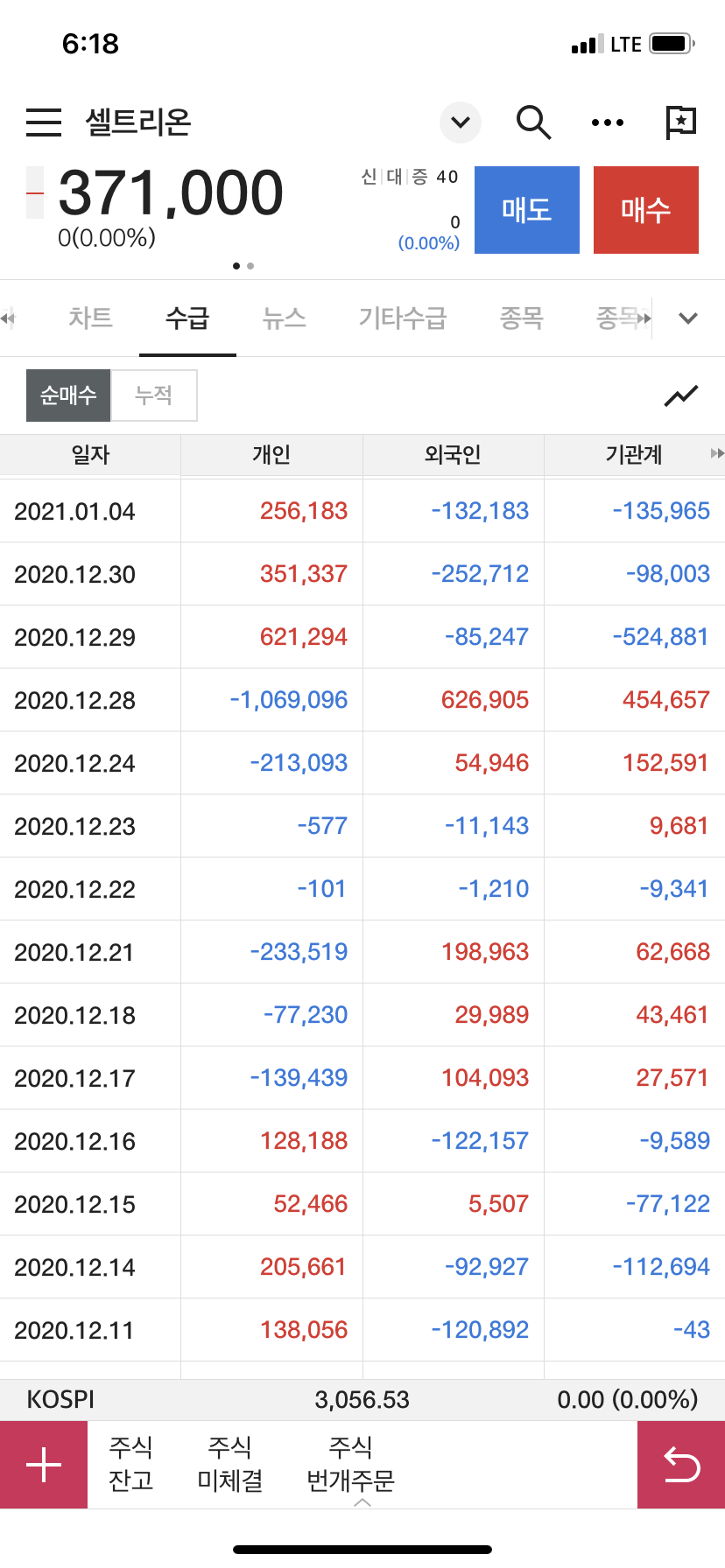 참고로 셀트리온 개미가 100만 주 이상 순매도한 경우는 근래에 찾기 힘들어서 찾아보니, 2020년 12월 28일이었다.