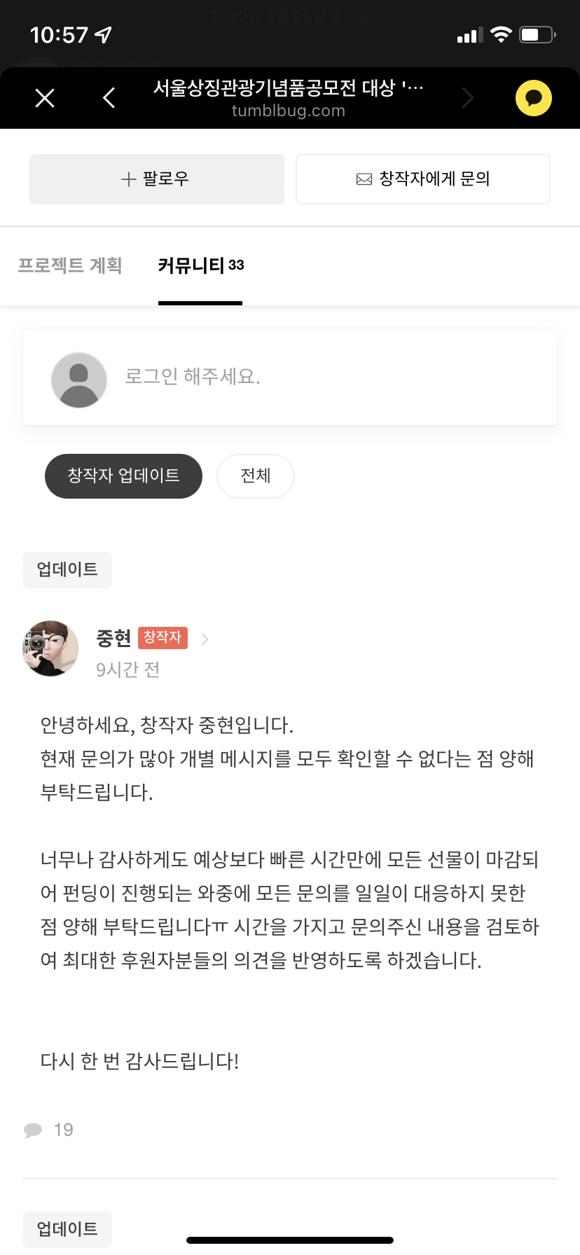 창작자인 김중현님도 쏟아지는 문의에 많이 바쁘신 것 같습니다.