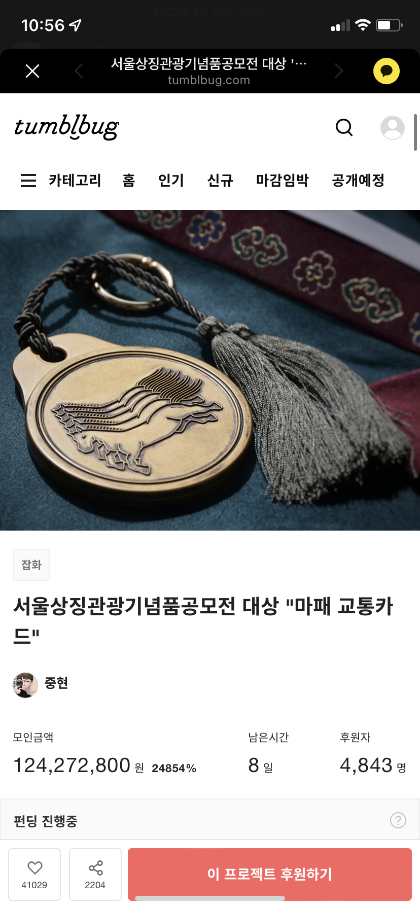 텀블벅에서 펀딩 프로젝트를 해서 마패 교통카드 제작한다고 했었거든요.