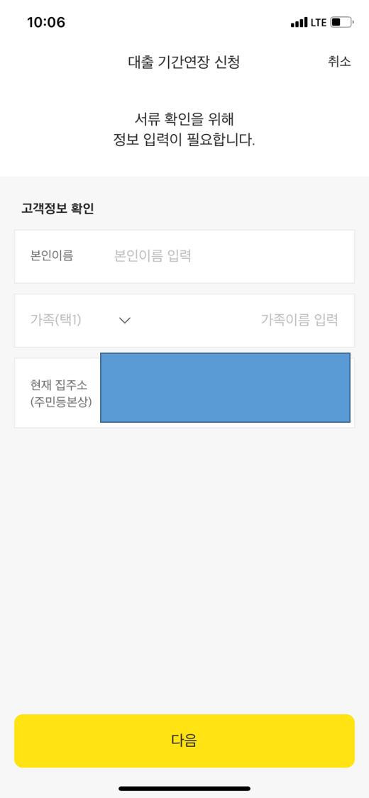 이름, 주민등본상의 주소를 입력하고 다음을 누른다.