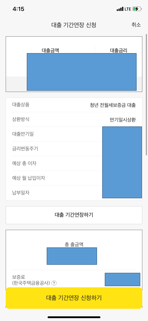 이렇게 새로 대출 기간 연장을 할 수가 있다.